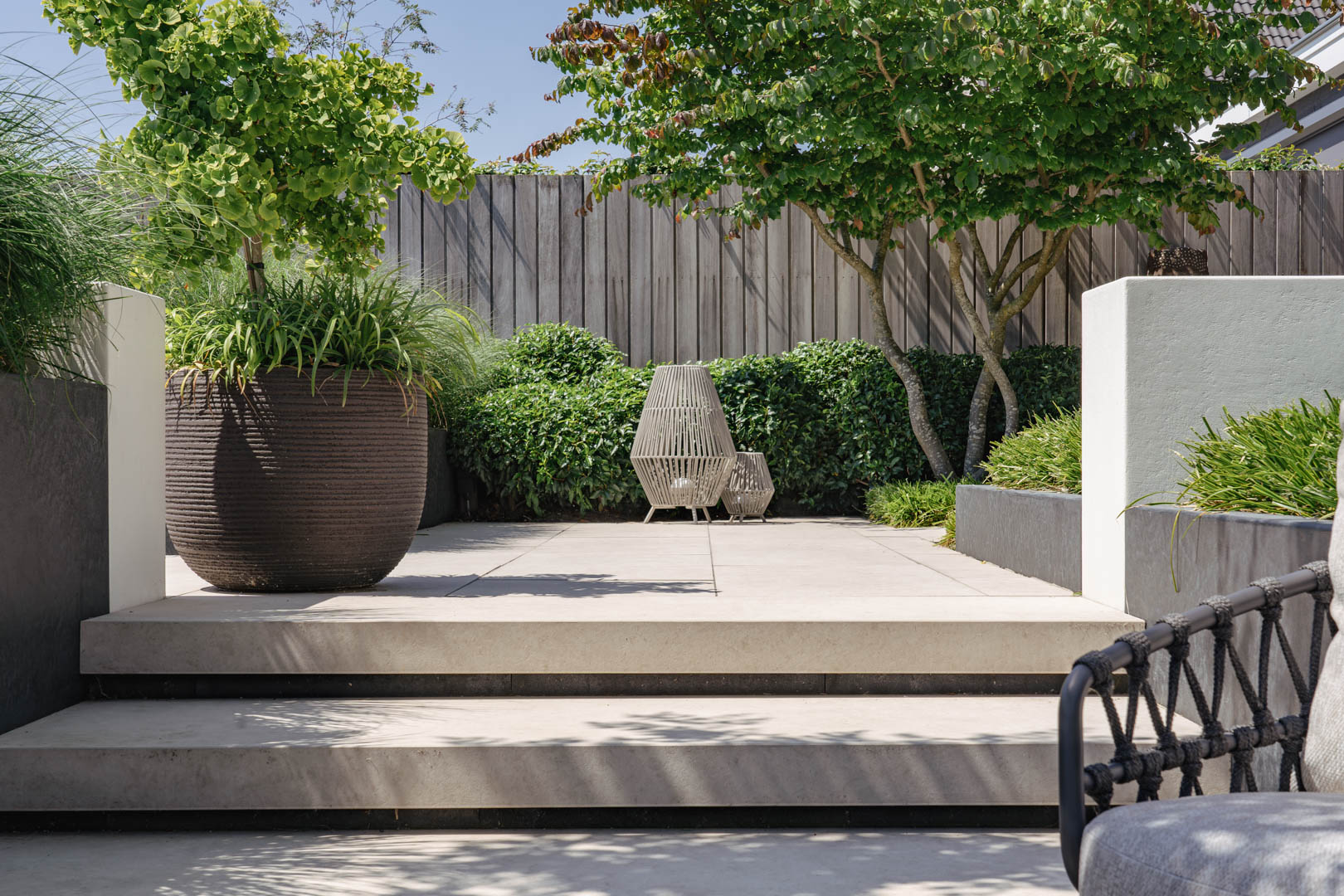 Er is veel aandacht besteed aan details en verlichting. Met name de hoogteverschillen worden fraai opgevangen met deskundig gemaakte traptreden en keerelementen die ook in de avond subtiel worden aangelicht met ledverlichting. Er is gekozen voor mooie volgroeide beplanting, dat maakt dat de tuin direct na oplevering de indruk geeft van een tuin die direct volwassen is.